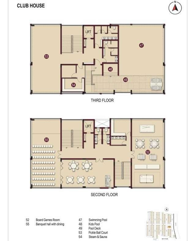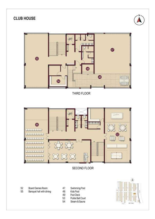 - Exclusive clubhouses with rooftop swimming pool,spanning 17,000 sq. ft., are thoughtfully designed within the community, offering residents an abundance of indoor amenities for comfortable vehicular movement.