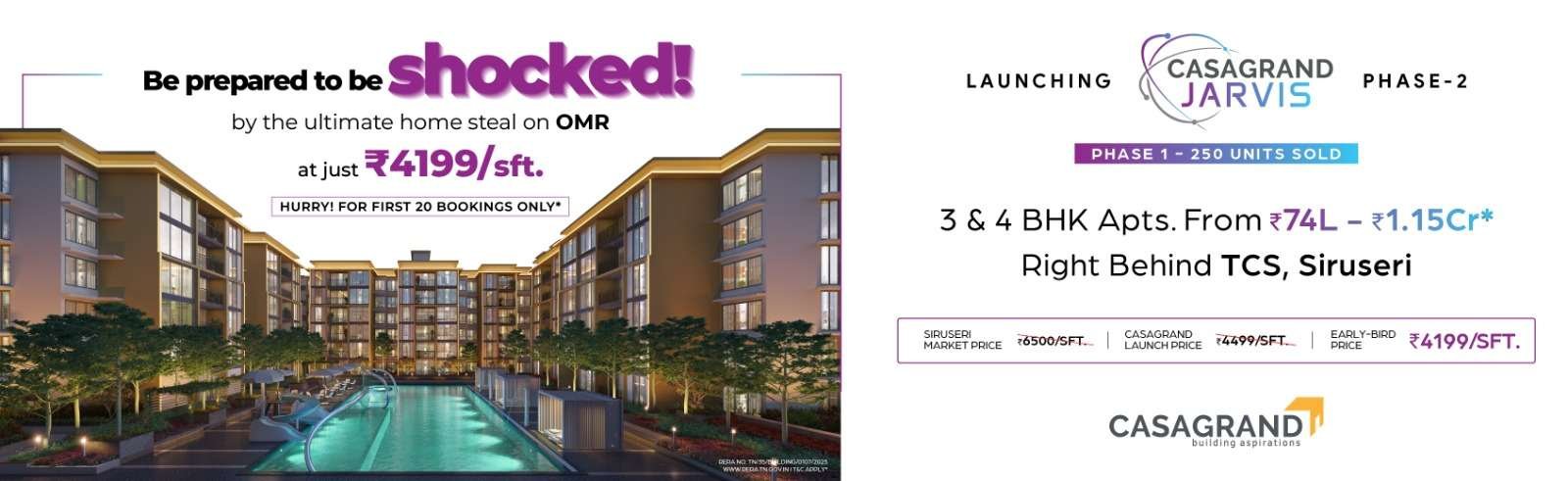 Casagrand Builder Private Limited is a real estate enterprise committed to building aspirations and delivering value. In the last fifteen years, we have developed over 22 million sqft of prime residential real estate across Chennai, Bengaluru, and Coimbatore. Over 18,250 happy families across 112+ landmark properties stand testimony to our commitment. In the sixteenth year of our journey, we at Casagrand are all set to progress further forward with projects worth over Rs. 8000 crores in the pipeline.