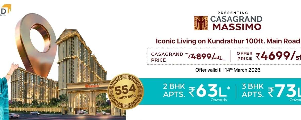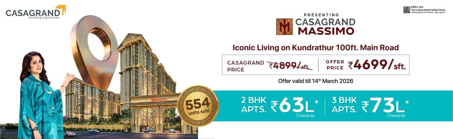 Casagrand Builder Private Limited is a real estate enterprise committed to building aspirations and delivering value. In the last fifteen years, we have developed over 22 million sqft of prime residential real estate across Chennai, Bengaluru, and Coimbatore. Over 18,250 happy families across 112+ landmark properties stand testimony to our commitment. In the sixteenth year of our journey, we at Casagrand are all set to progress further forward with projects worth over Rs. 8000 crores in the pipeline.