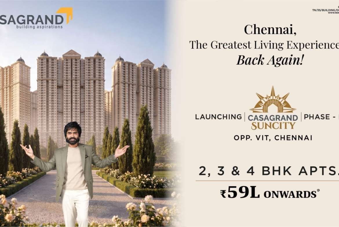 Check out Casagrand Suncity in Kelambakkam, one of the upcoming under-construction housing societies in Chennai South. There are apartments for sale in Casagrand Suncity Kelambakkam, Chennai. This society will have all basic facilities and amenities to suit homebuyer’s needs and requirements. Brought to you by Casagrand, Casagrand Suncity is scheduled for possession in Jul, 2027.