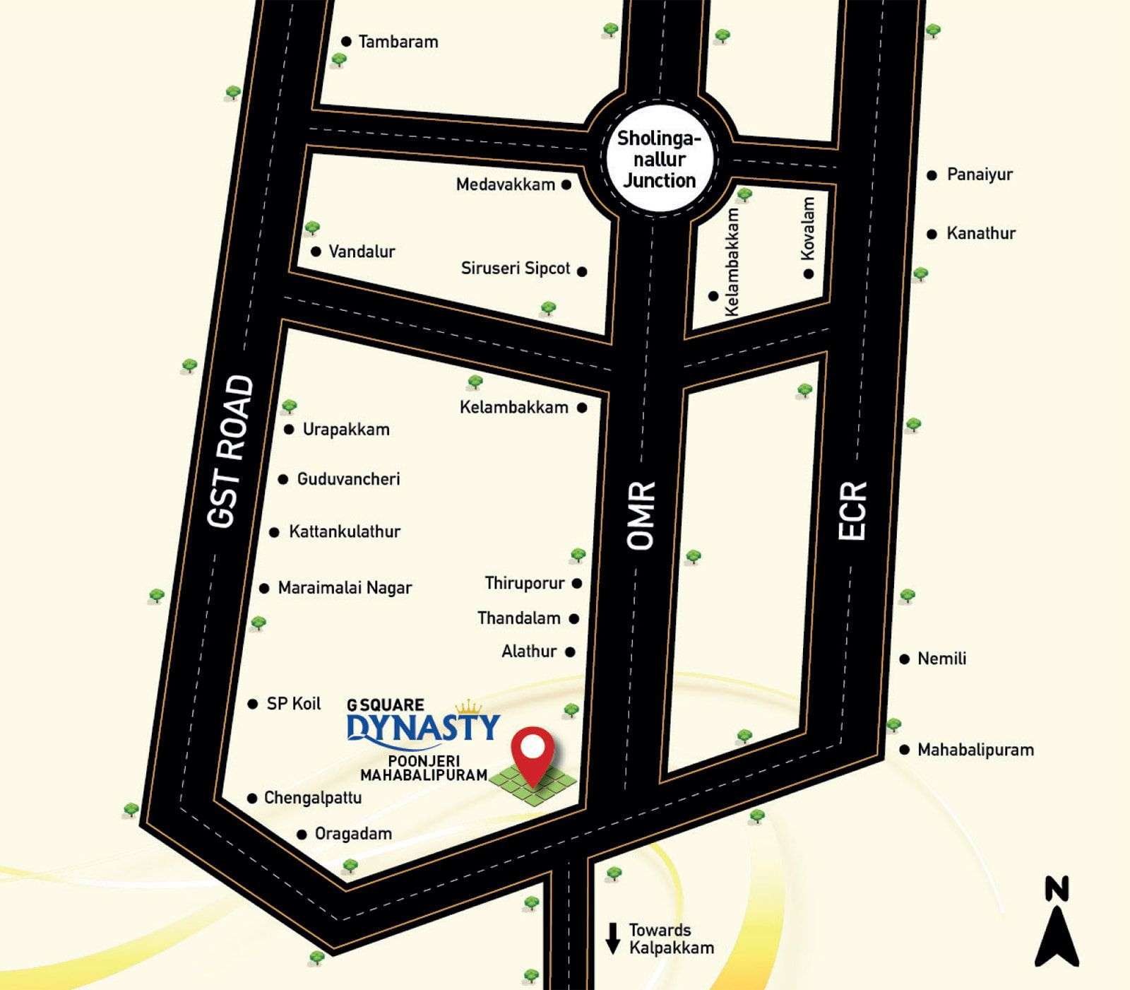 G Square Dynasty is a residential plot by GSquare. This plot is available for sale in Mahabalipuram, Chennai. The plot area is 1735.0 sq.ft.. This project was launched on September 2023. There are 296 units in G Square Dynasty. The address of G Square Dynasty is Mahabalipuram.