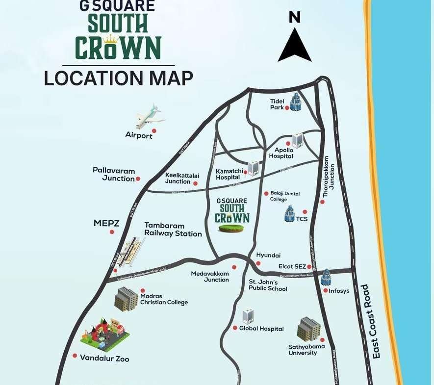 Nestle into a way of life at G Square South Crown, developed by G Square Housing, a premium plotted development in Chennai’s thriving suburb, Medavakkam. Set upon an ideal location, this project features 86 thoughtfully laid residential plots from 1200 sq ft to 2027 sq ft, giving you a wonderful opportunity to create your dream home exactly how you want. The ready-to-occupy G Square South Crown in Medavakkam combines urban amenities and a pleasant residential environment to make Medavakkam a great place to work and live. Each plot is provided with essential infrastructure. To make settling in more hassle-free, also comes with a whole year of complimentary maintenance, so when you move into your new home, your maintenance is covered for that transition period. Schedule your site visit and build your dream!