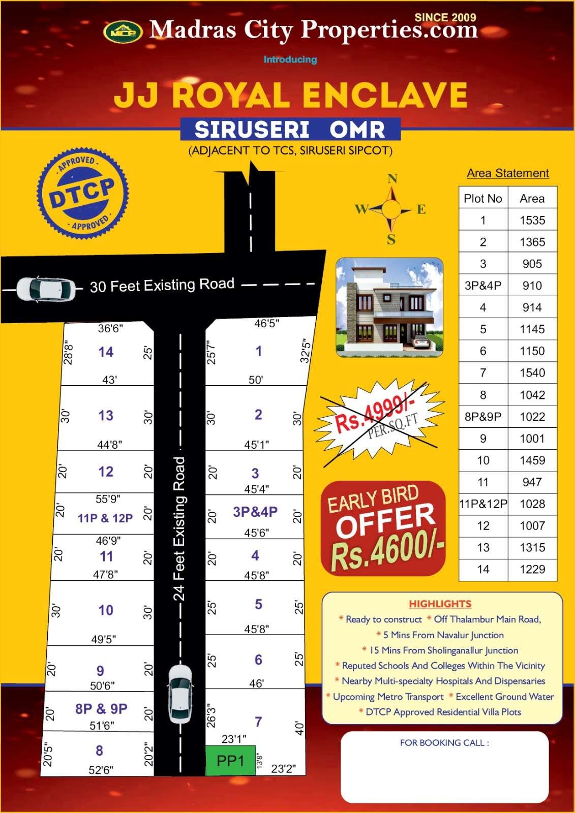 The amenities in JJ Royal Enclave comprises of Compound, Gated Community, Rain Water Harvesting, Security Personnel, Street Light and Vastu / Feng Shui compliant. Location of JJ Royal Enclave is perfect for the ones who desire to invest in property in Chennai with many schools, colleges, hospitals, supermarkets, recreational areas, parks and many other facilities nearby Siruseri.