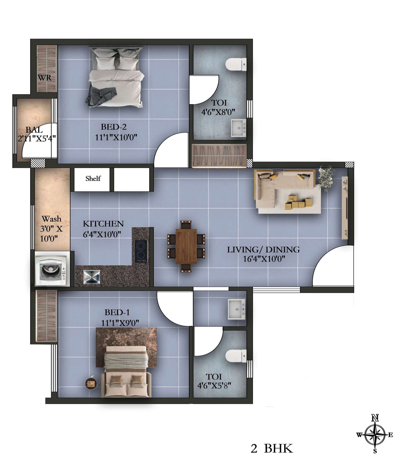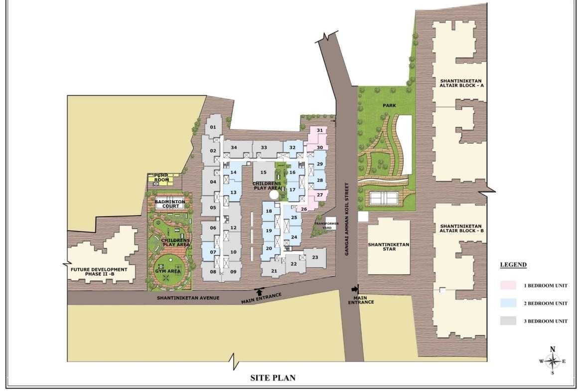 Shantiniketan Vega in Kelambakkam, Chennai is a ready-to-move housing society. It offers apartments in varied budget range. These units are a perfect combination of comfort and style, specifically designed to suit your requirements and conveniences. There are 1BHK, 2BHK and 3BHK Apartments available in this project. This housing society is now ready to be called home as families have started moving in.